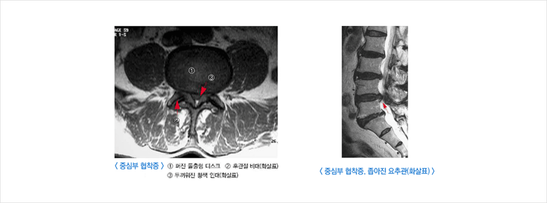 요추관 협착증은 척추와 추간판의 퇴행성 변화에 따라서 요추 척추관, 신경근관 또는 추간공이 좁아져서 허리의 통증을 유발하거나 다리에 복합적인 신경증세를 일으키는 질환입니다. 초기에는 요통이 나이 탓으로 그러려니 하고 지내다가 그 뒤 신경이 압박되어 엉덩이와 허벅지가 따갑고 우리한 통증을 호소하면서 무릎 아래에서 발바닥까지 저리고 시린 통증을 나타나게 될 때 병원을 찾게 됩니다.