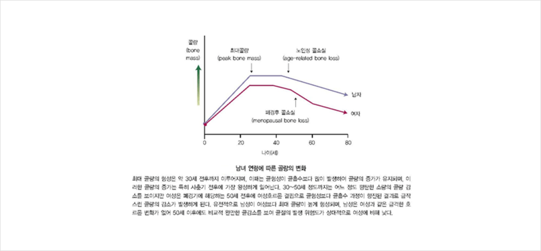 여성은 폐경에 따라 에스트로겐 생산력이 감소되고, 이로 인해 골격으로부터 골량이 급격하게 감소하기 때문입니다.