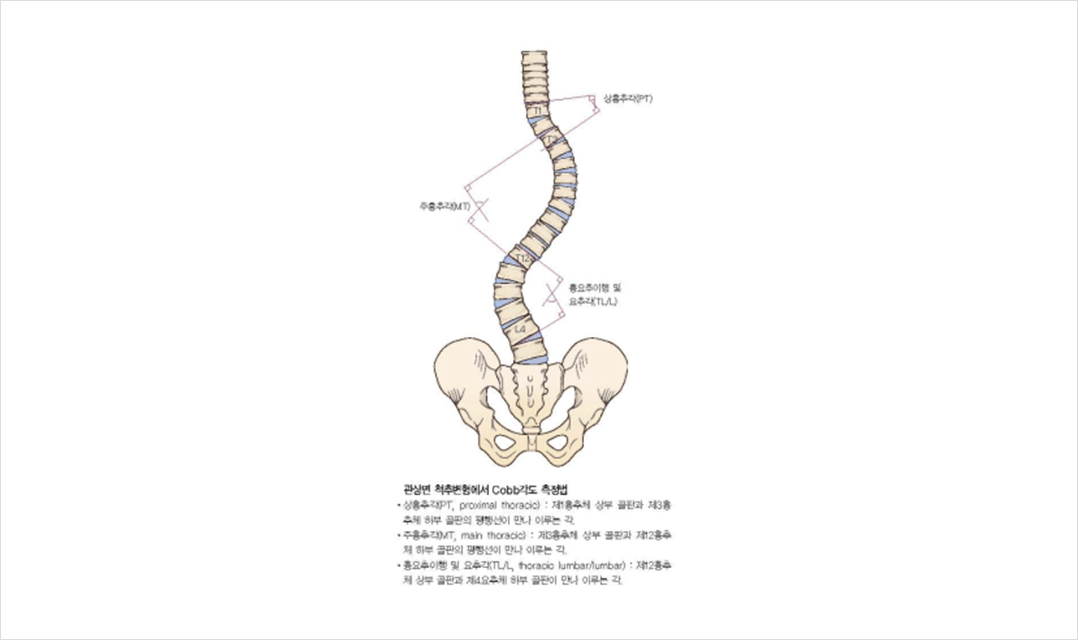 정상적인 척추는 정면에서 보았을 때 일직선이며, 옆에서 보았을 때에는 경추와 요추는 앞 으로 휘고(전만곡) 흉추와 천추부는 뒤로 휘어(후만곡) 있습니다. 하지만 척추측만증은 척추 가 정면에서 보았을 때 옆으로 휜 것을 지칭합니다.단순한 2차원적인 기형이 아니라 추체 자체의 회전 변형과 동반되어 옆에서 보았을 때에도 정상적인 만곡상태가 아닌 3차원적인 기형상태입니다.