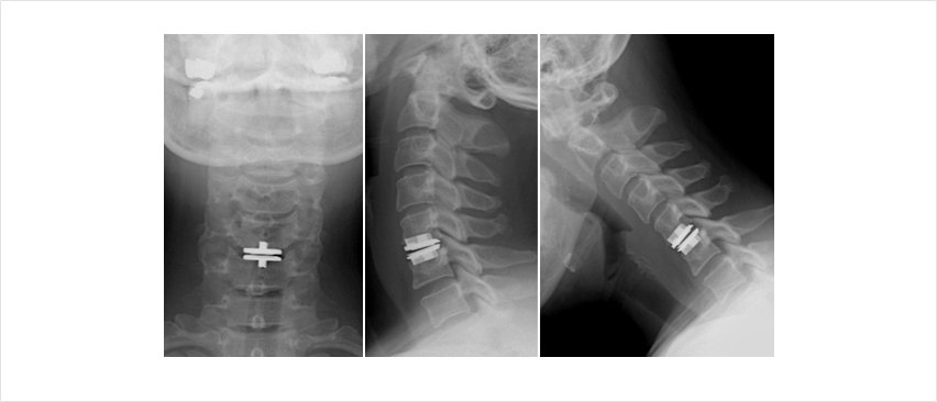 디스크의 경화 상태, 인대의 석회화, 경추 뼈의 구조를 볼 수 있습니다.