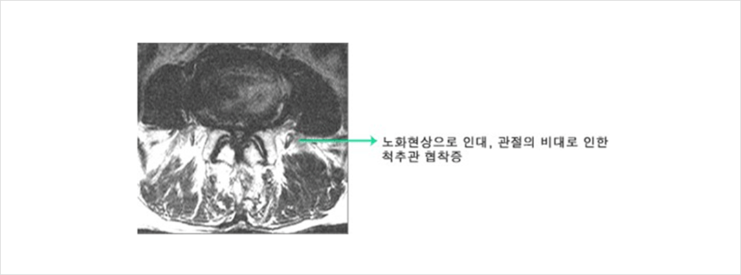 척추뼈, 관절, 인대의 비대로 척추관의 협착 정도를 알 수 있습니다.